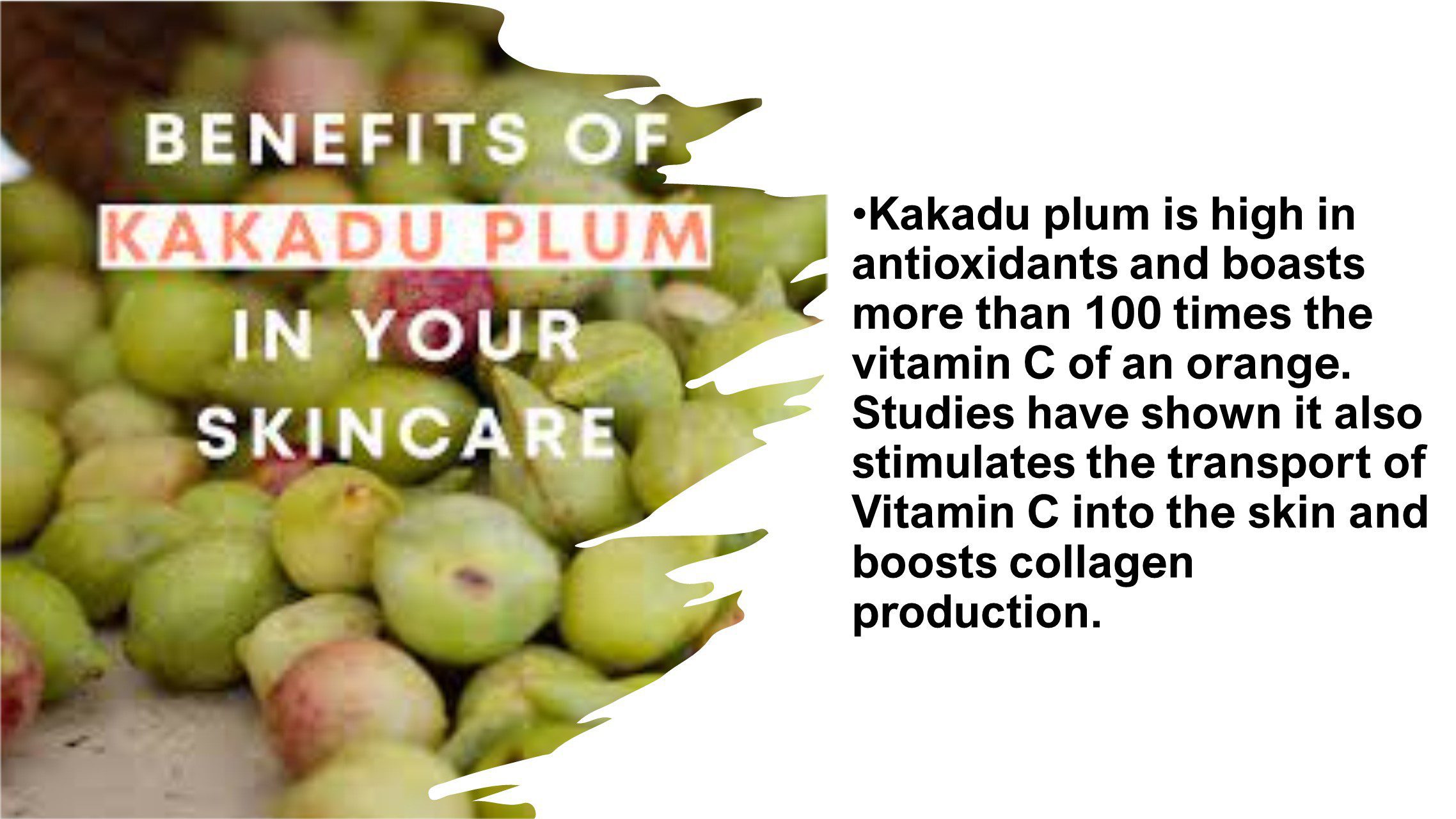 - Terminalia ferdinandiana (Kakadu Plum) Fruit Extract a beneficial extract from the Kakadu plum that contains the world’s highest source of Vitamin C. Studies have shown that it promotes the transport of Vitamin C into the skin and boosts collagen production.